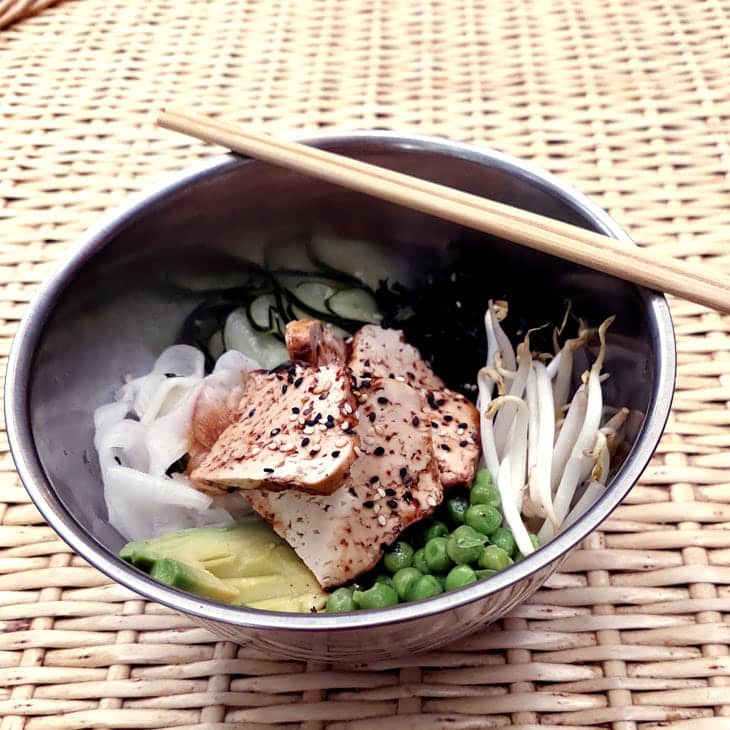 Reemplazar el pescado del Poke Bowl por hongos, sí, claro. Si tenés shiitakes, portobellos y champiñones (o los que encuentres), cortalos en rodajas de 4 mm y saltealos en un wok caliente con aceite de sésamo y ajo y desglasalos al final con vino de arroz. Resto de la receta de Poke Bowl, igual.