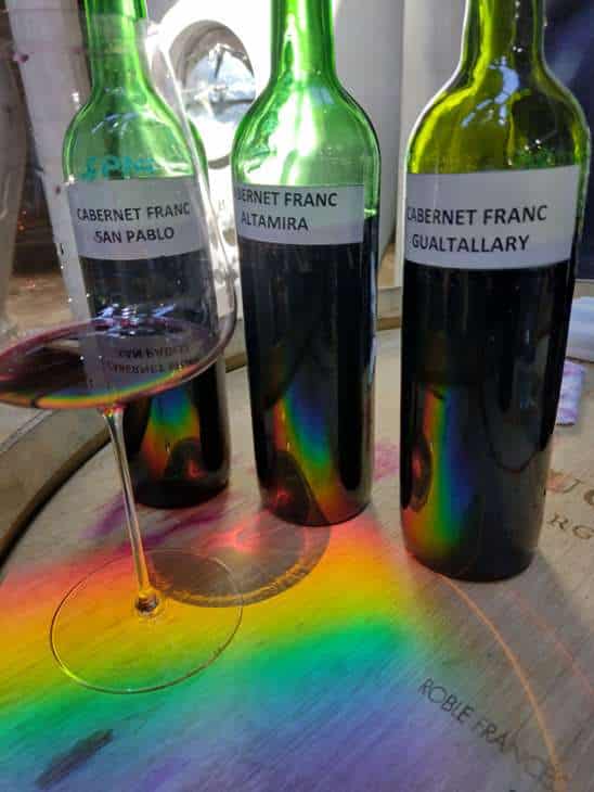 Y también los que provienen de Valle de Uco, 75% del Franc en la provincia, donde algunos son delgaditos y vibrantes y otros un poco más robustos, con la fruta siempre al frente en ambos casos.