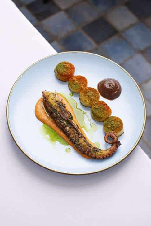 Sin dudas, el pescado y los frutos de mar fresquísimos son los reyes de la carta. Se destacan el crudo de pesca de anzuelo del día, con jalapeños, alcaparrones y emulsión de limón; los langostinos al ajillo de la Patagonia, y carpaccio de pulpo que llega con emulsión de tomate confitado y albahaca: rabas y chipirones (entre las entradas).