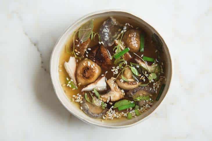 1) La sopa de alimonados, inspirada en la historia de “Oliver Twist” (Charles Dickens) de la carta dedicada a la literatura. Elaborada a base de raíces, plantas y katsuobushi, con cuatro variedades de hongos y hierbas frescas, una delicia. Carta Invierno 2017.