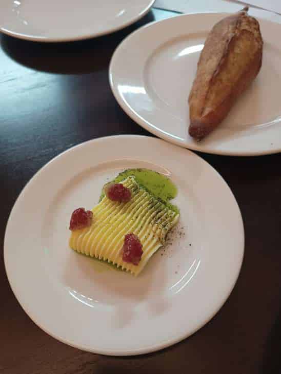 En la terraza (ya lista para la próxima etapa), crece una pequeña higuera en una maceta. Y la manteca que acompaña la baguette de masa madre que abre la comida está saborizada con hojas de higuera, al igual que uno de los helados de los postres, una delicia. Y una de las entradas, claro, es Fico y Formaggio.
