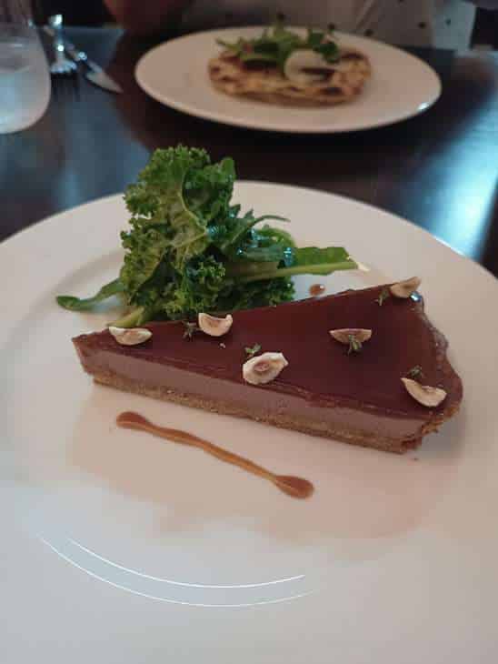 Si sos team chocolate, hay un cremoso de chocolate semiamargo, crocante de avellanas, nibs de cacao y gelatina de café.